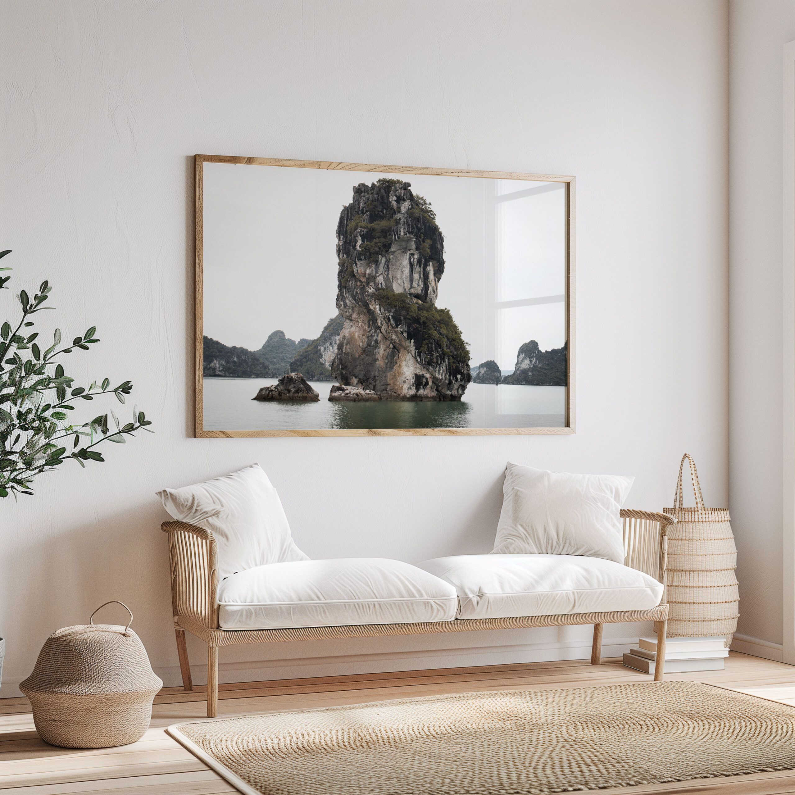 Bring the breathtaking beauty of Halong Bay into your home with this fine art print, featuring dramatic limestone formations and serene emerald waters. Perfect for travel enthusiasts, nature lovers, or those looking to add a calming, elegant touch to their decor.