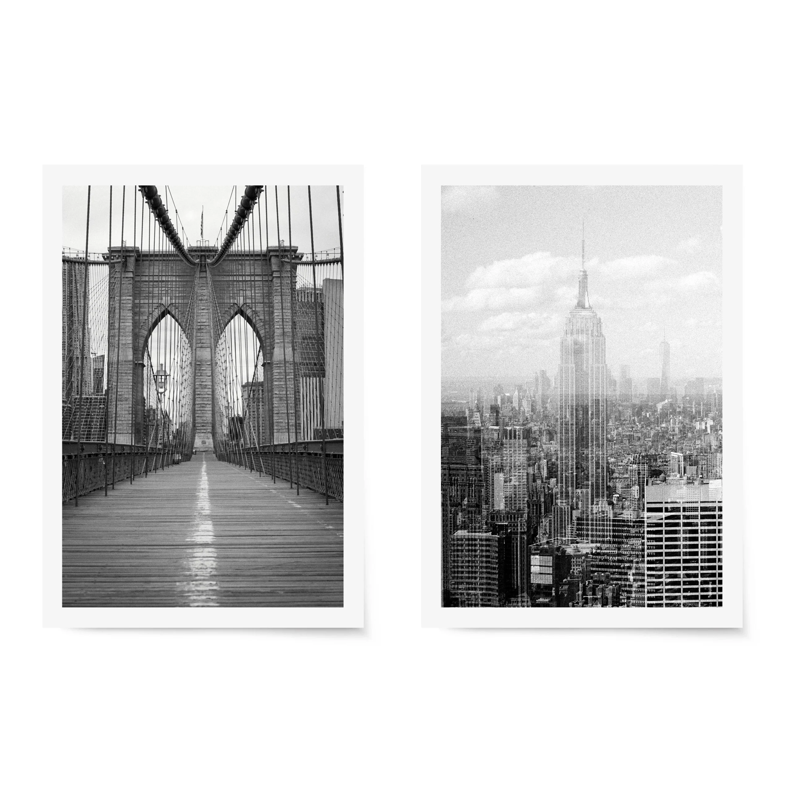 Celebrate the timeless allure of New York City with this black-and-white gallery wall set, featuring the iconic Brooklyn Bridge and Empire State Building. Captured on film, these prints highlight the city’s architectural grandeur and historic charm.