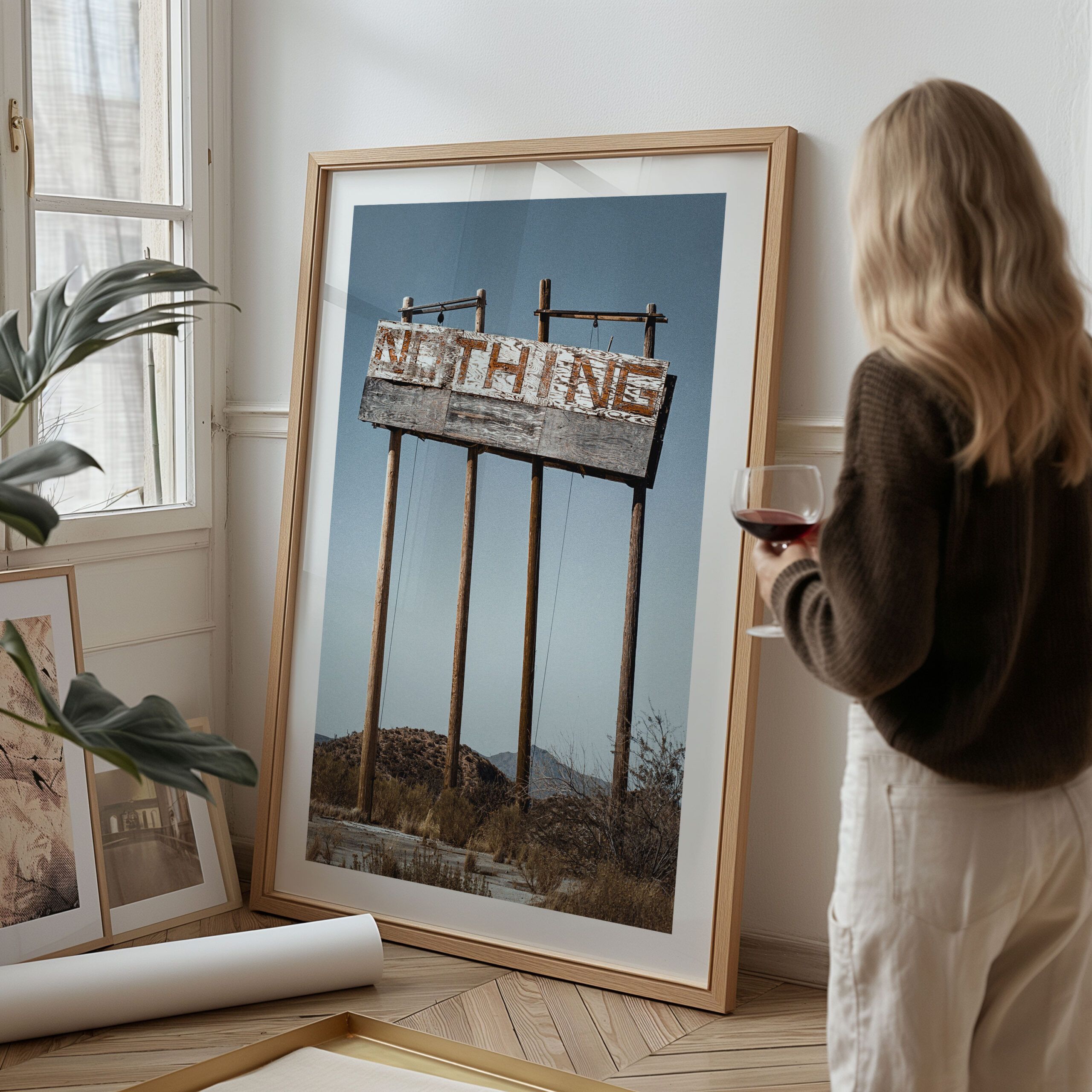 Give the gift of ‘Nothing’ with this unique vintage desert sign print, perfect for adding rustic charm to any space. Captured in Arizona, this minimalist photography art is ideal for Southwestern decor enthusiasts.