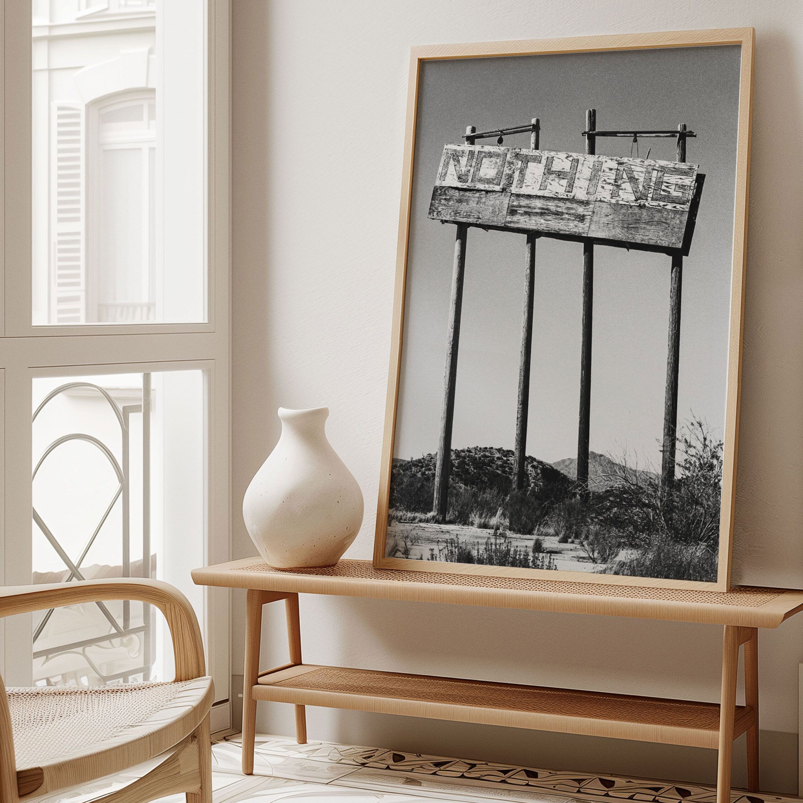 This black-and-white fine art print features the iconic “Nothing” sign standing proudly in the Arizona desert. A witty, tongue-in-cheek gift that’s perfect for minimalists, art lovers, or anyone with a sense of humor.