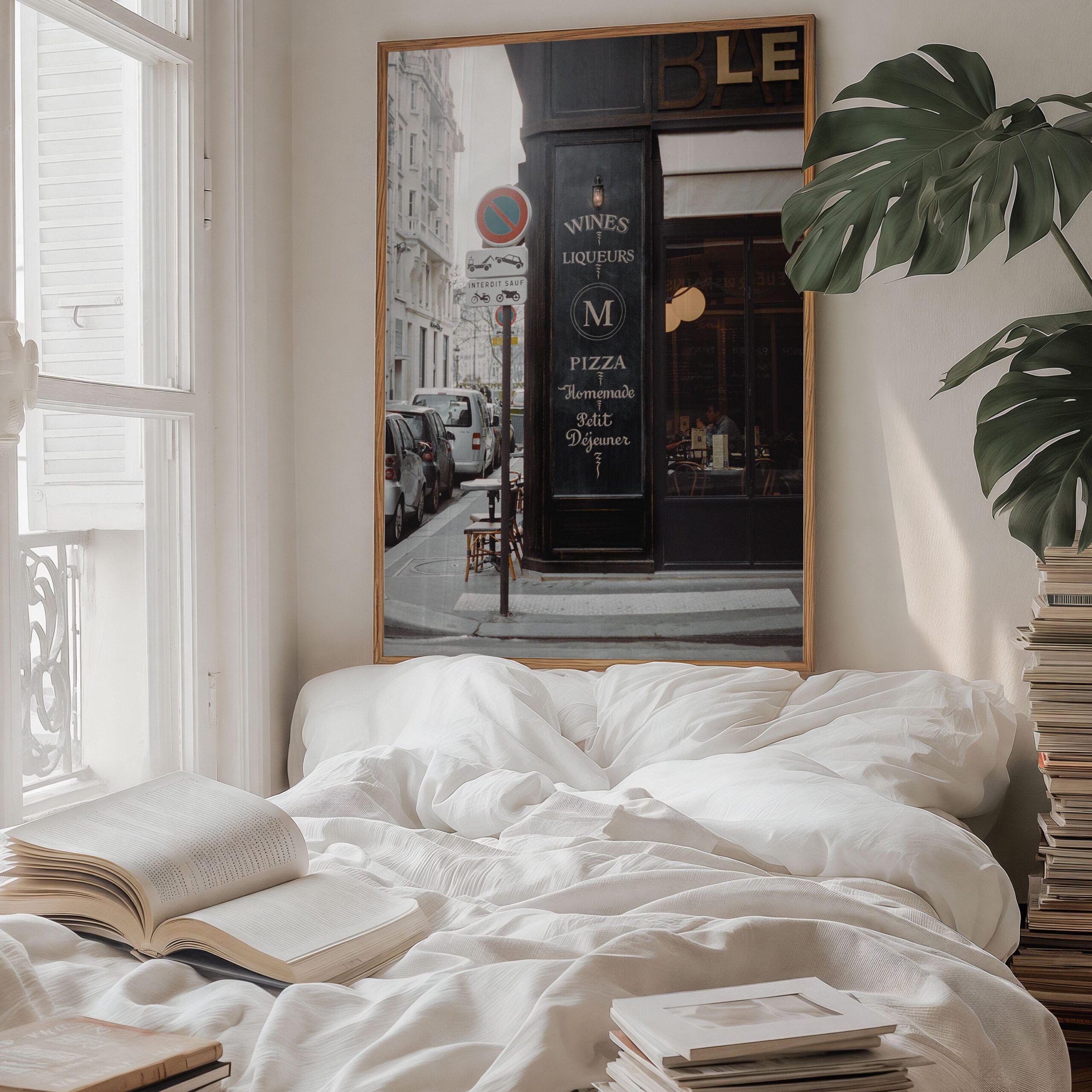 This charming photograph captures a quintessential Parisian corner café, adorned with vintage signage and cozy outdoor seating. The inviting scene evokes the romance of Paris, perfect for those who treasure café culture, wanderlust, and European-inspired decor.