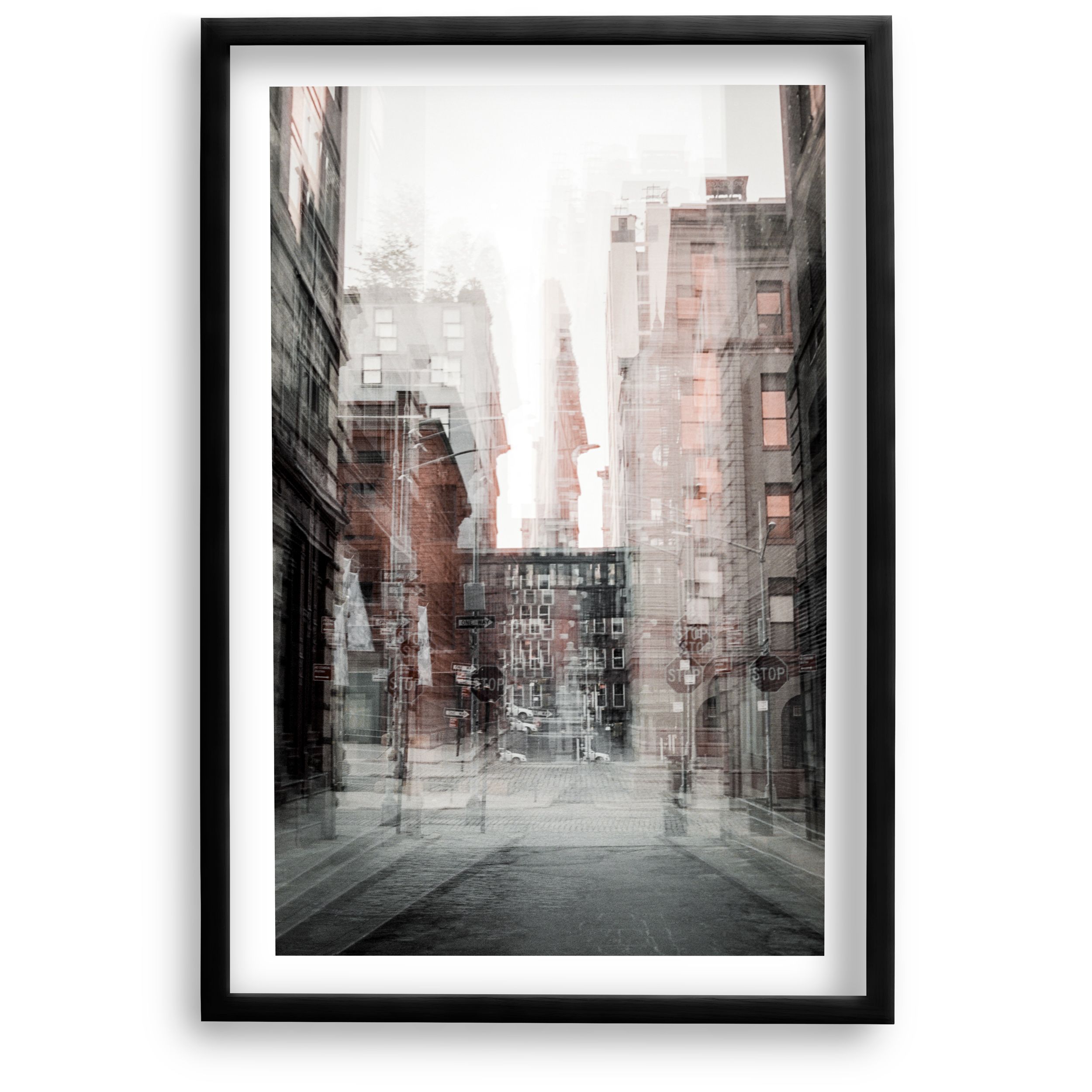 This abstract double exposure photograph layers the iconic Staple Street in Tribeca, creating a surreal blend of urban textures. Perfect for those who appreciate unique, modern art with a New York City edge, this piece elevates any gallery wall or living space.